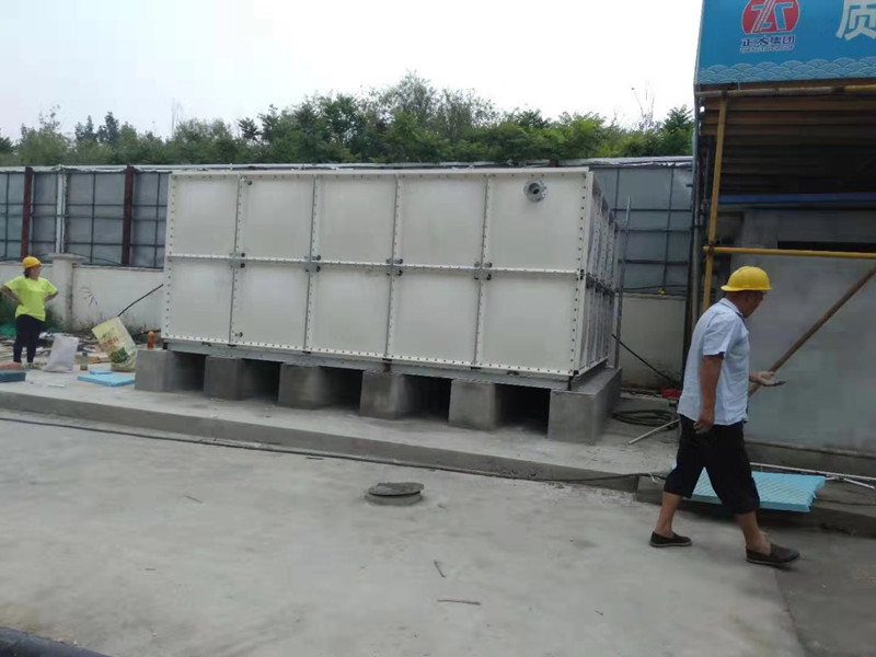 供貨單位:山東省騰翔集團武城模壓制品有限公司施工單位:天津武清區運河小鎮產品名稱:玻璃鋼水箱產品型號:5*4*2 安裝現場如圖: