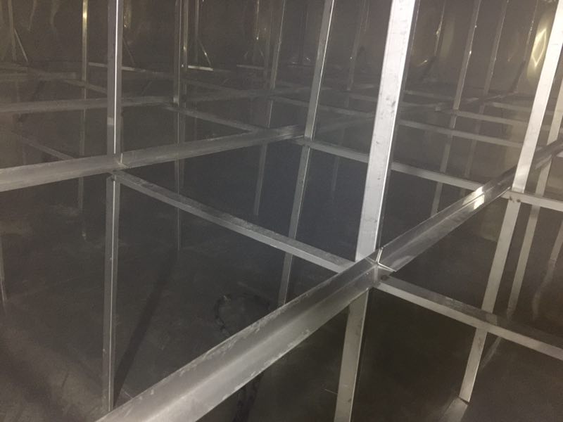 主拉主要作用是防止水箱變形,厚度一般采用靠近底板的側(cè)板厚度為基準(zhǔn),規(guī)格為4cm*4cm。其焊接間距一般為1000mm一條,大型水箱特別是高度超過3米以上的。其間距應(yīng)該為500mm一條,連接處必須進(jìn)行滿焊處理。