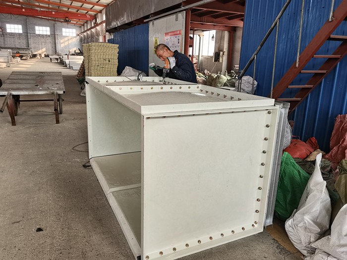 玻璃鋼模壓水箱是由SMC模壓板塊、密封材料、金屬結(jié)構(gòu)件及配管系統(tǒng)現(xiàn)場組裝而成。給設(shè)計和施工帶來很大方便。一般水箱按標(biāo)準(zhǔn)設(shè)計,水箱需要設(shè)計。可根據(jù)用戶需要組裝0.125-1500立方米的水箱。若原有水箱需要換,不需要改造房屋,適應(yīng)性很強。研制的定型產(chǎn)品密封帶,該密封帶、耐水、彈性大、變型小,緊固密封。水箱整體強度高,無滲漏,無變形,保養(yǎng)、檢修方便。 玻璃鋼水箱是目前采用的新型水箱。由整體SMC水箱板拼裝而成。其特點是采用食品樹脂,因此水質(zhì)好;具有強度高,重量輕,耐腐蝕,外型美觀,使用時間長,保養(yǎng)管理方便等特點。