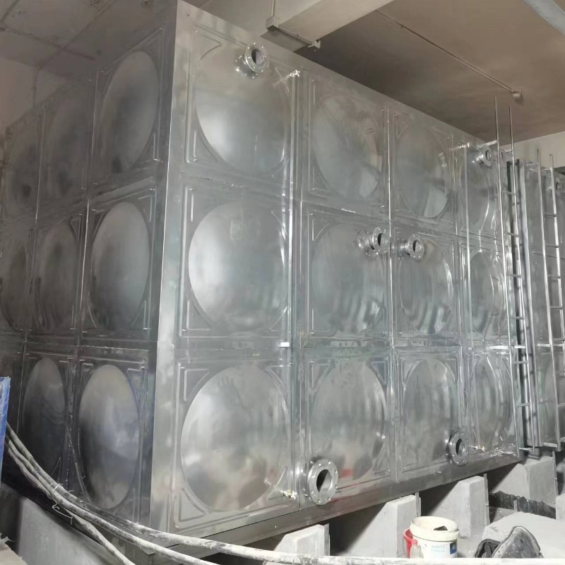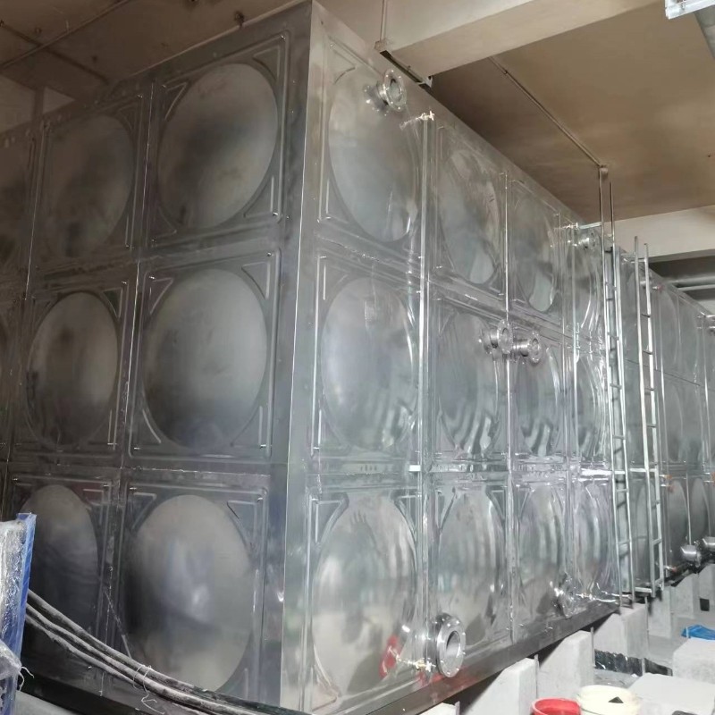 沖壓不銹鋼板焊接水箱采用不銹鋼鋼板沖壓出加強筋,并用不銹鋼焊接條整體焊接而成,結構簡單,強度好,可制造較大容量的水箱。因箱體采用不銹鋼板整體焊接,徹底遮斷了太陽光的照射,所以不會滋生藻類。使水質始終保持清潔。