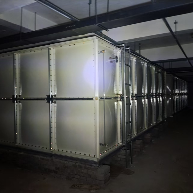 滄州市任丘市京淶一品地下室戰時人防玻璃鋼水箱安裝完成
