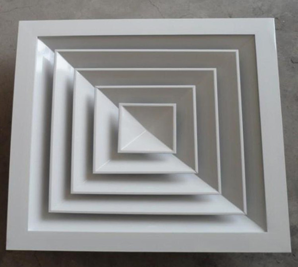 方形散流器先調(diào)挺直,表面光潔,葉片角度為固定式,葉片采用夾角片沖壓連接,整個葉片與邊框采用分離式結(jié)構(gòu),以方便安裝與調(diào)節(jié)。設(shè)計時可根據(jù)房間造型不同,選用不同出風方向的散流器,可與調(diào)節(jié)閥配套使用鋁合金表面經(jīng)陽極氧化處理,也可根據(jù)用戶要求進行靜電噴塑處理。